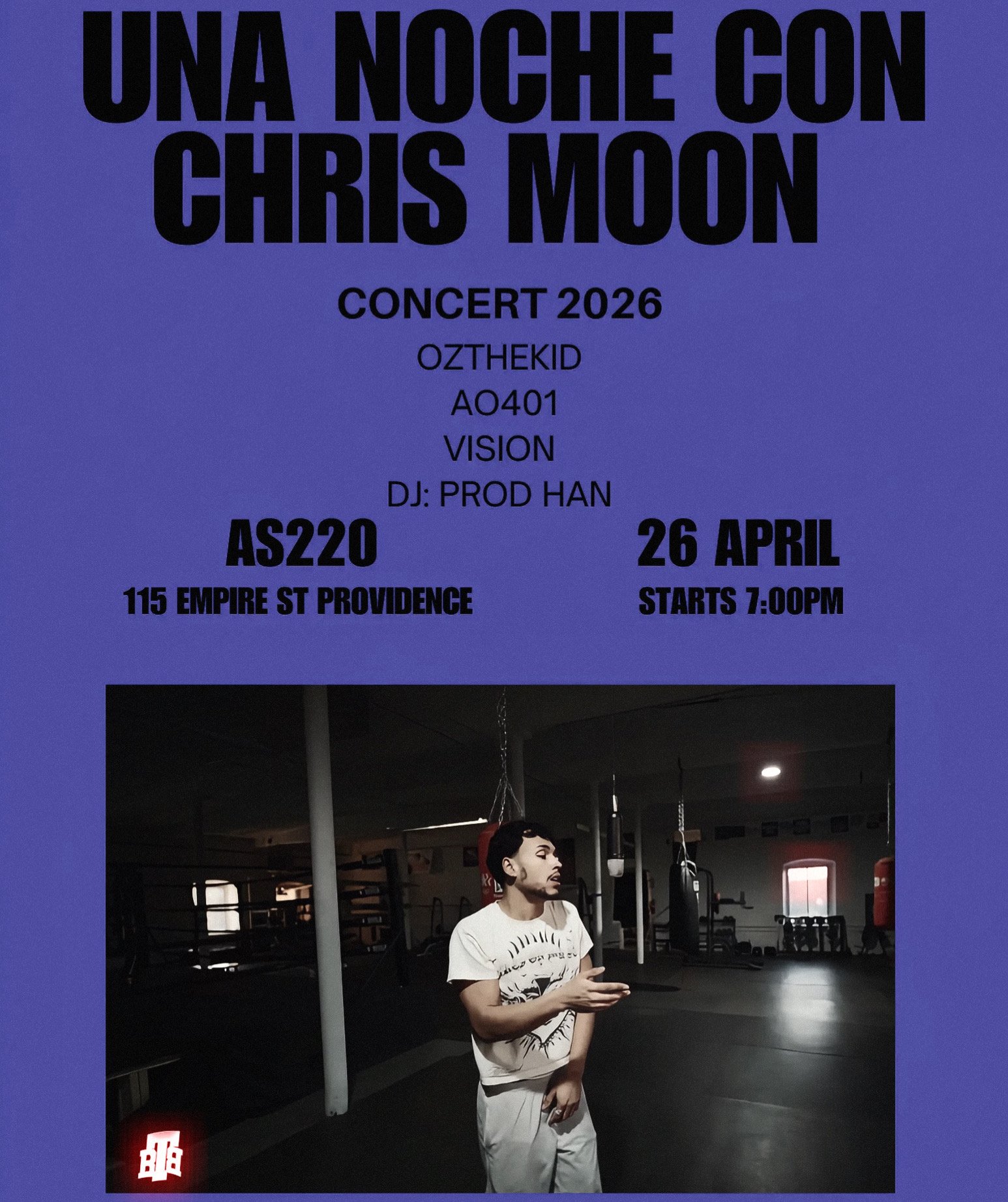 Back to All Events FREE SHOW - UNA NOCHE CON CHRIS MOON Sunday, April 26, 2026 7:00 PM 11:30 PM AS220 Main Stage 115 Empire Street Providence, RI, 02903 United States (map) Google Calendar ICS