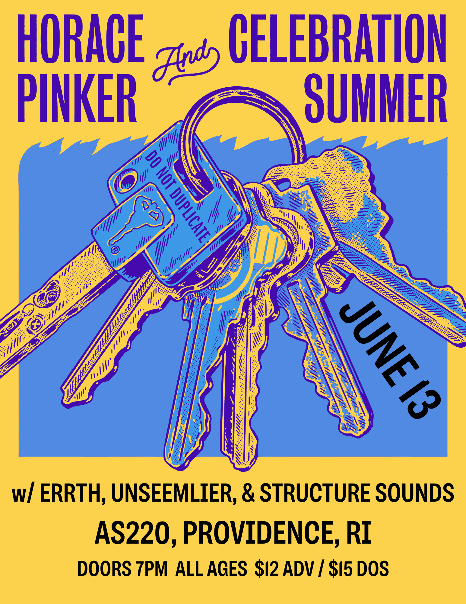 Horace Pinker and Celebration Summer w/ Errth + Unseemlier + Structure Sounds Saturday, June 13, 2026 7:00 PM 11:30 PM AS220 Main Stage 115 Empire Street Providence, RI, 02903 United States (map) Google Calendar ICS Get tickets