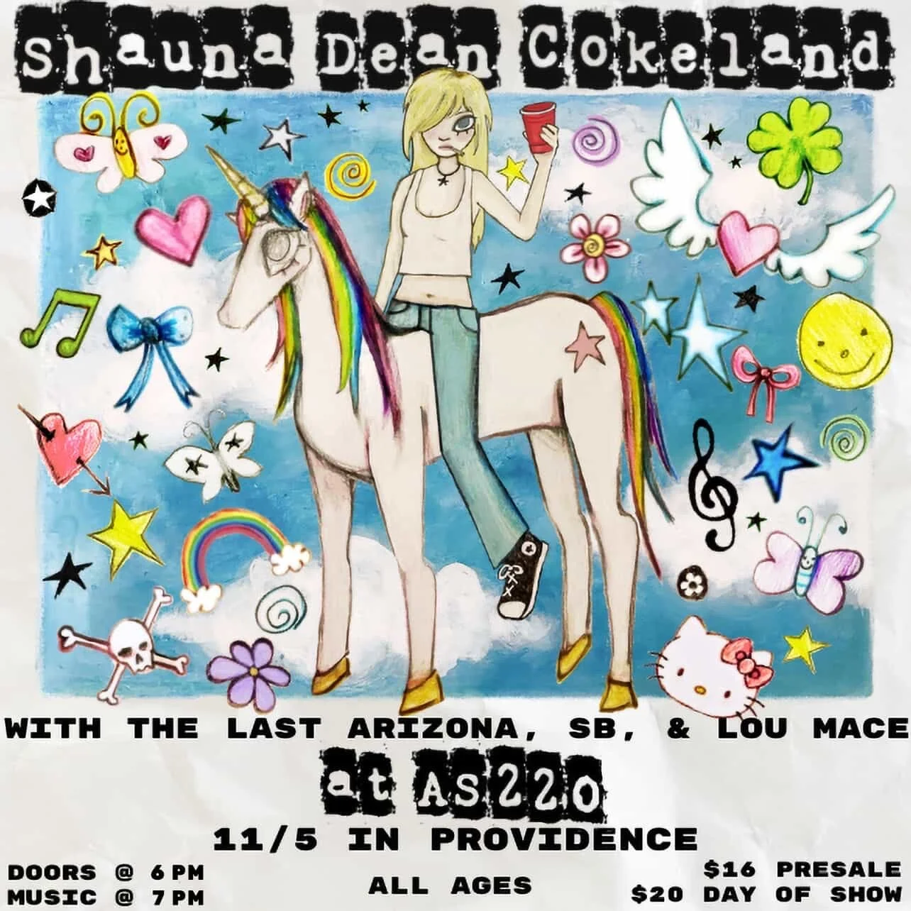 Shauna Dean Cokeland + The Last Arizona + SB + Lou Mace Wednesday, November 5, 2025 6:00 PM 11:45 PM AS220 Main Stage 115 Empire Street Providence, RI, 02903 United States (map) Google Calendar ICS Get tickets